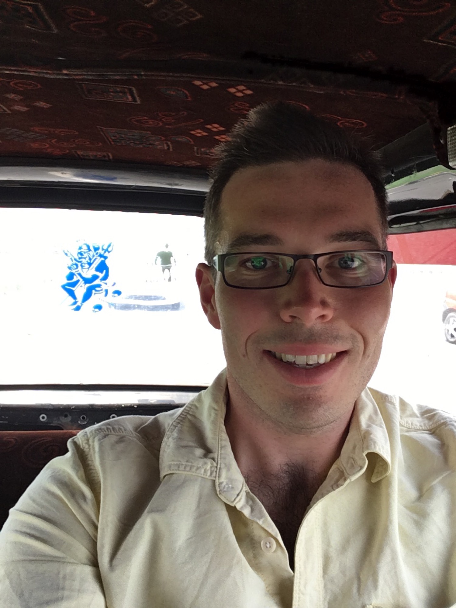 Driving from the Airport into the city was as much of an adventure as I hoped it would be. All kinds of hazardous driving and driving hazards were witnessed in the half hour it took to get across town. This included people crossing wide multiple-laned roads, motorbikes riding up against the flow of traffic, one tuk tuk’s front bumper lightly kissing another’s rear, and a cow by the side of the road.